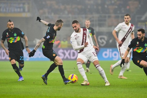 Sejak peluit babak pertama, kedua tim sama-sama tampil terbuka. Sejumlah peluang berhasil diciptakan kedua kesebelasan. Foto: Miguel MEDINA / AFPPada menit ke-30, Inter Milan mampu menciptakan gol via Denzel Dumfries. Foto: Miguel MEDINA / AFPBerawal dari serangan balik, Edin Dzeko yang berada di pinggir menggiring bola ke dalam kotak penalti. Eks pemain Roma itu lalu menyodorkan bola yang kemudian ditendang oleh Denzel Dumfries ke dalam gawang. Foto: Alberto Lingria/REUTERSSkor 1-0 bertahan babak pertama usai. Foto: Miguel MEDINA / AFPDi babak kedua, kedua tim tidak mengendurkan serangan. Torino tampil lebih menekan untuk mengejar ketertinggalan gol. Foto: Miguel MEDINA / AFPSementara Inter yang sudah unggul satu gol tetap melancarkan serangan-serangannya. Foto: Miguel MEDINA / AFPHingga babak kedua usai, tak ada gol lagi tercipta. Skor 1-0 untuk kemenangan Inter Milan. Foto: Miguel MEDINA / AFPKemenangan ini membuat Inter Milan kokoh di puncak klasemen dengan 46 angka. Sementara Torino menempati posisi ke-11 lewat torehan 25 angka. Foto: Alberto Lingria/REUTERS